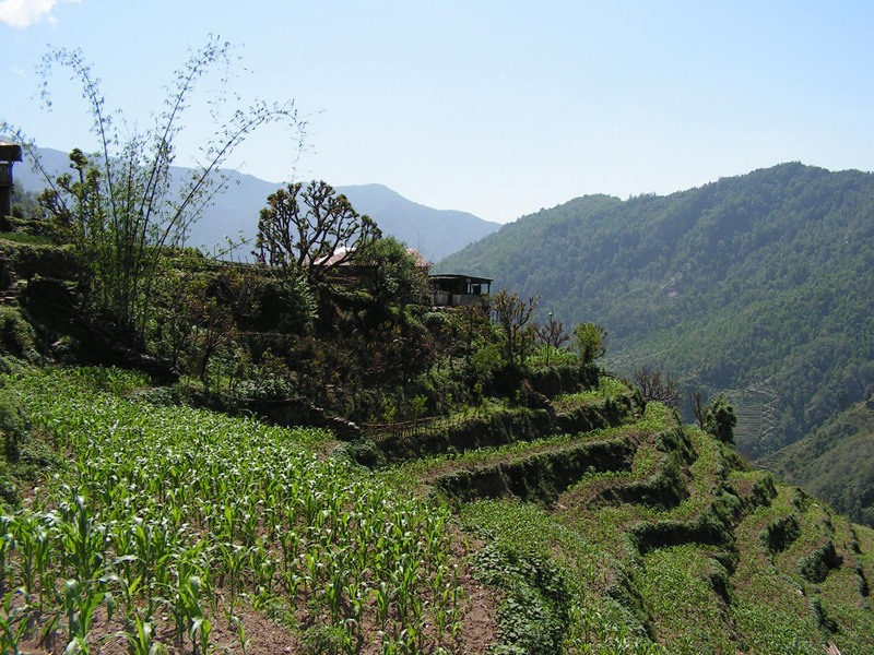 На подходе к Чомронгу сезоны года окончательно сошли с ума. Мало того, что орхидея росла на вишне с красными вишенками. В одной части деревни урожай был уже убран, то есть у них была осень. А в другой распахивали маленькие террасные поля с помощью быков и деревянного плуга, в этом смысле в Непале за прошедшие 300 лет мало что изменилось. Была ли у них весна или здесь просто можно вырастить несколько урожаев в год - я не очень поняла. Но привычная смена времен года здесь явно не работала.