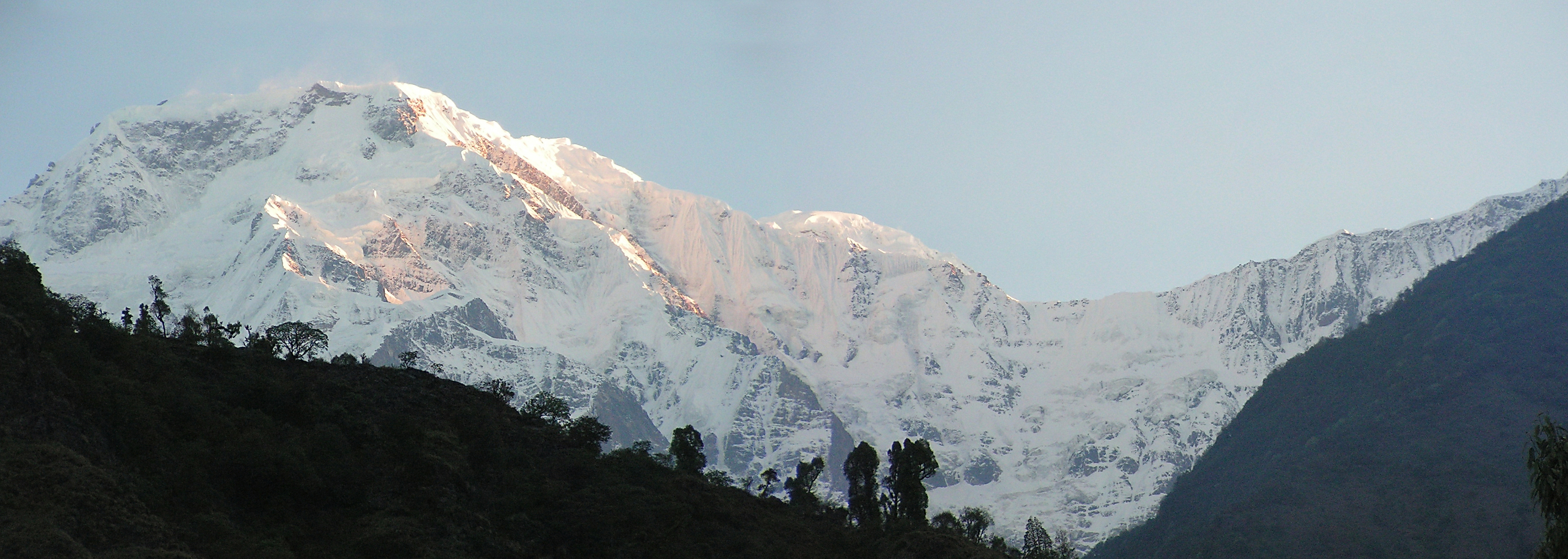 Как ни странно, даже из низины, где расположен поселок Джину Данда, было видно немножко гор, а конкретно Южная Аннапурна. Утром я с трепетом смотрела на последний горный рассвет этого путешествия.