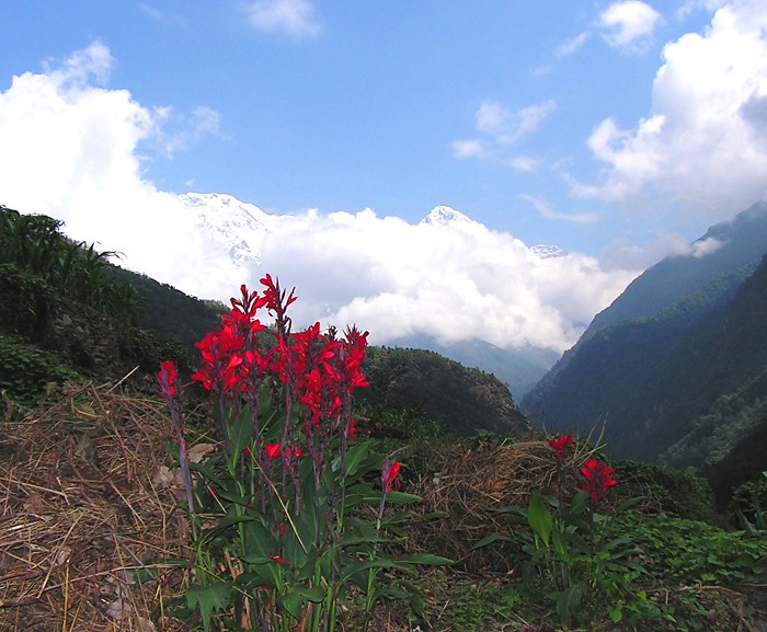 Все время перед завтраком я смотрела на горы и прощалась. Когда мы стали спускаться по долине реки Моди Кхола к Биретханти, горы еще некоторое время были видны.