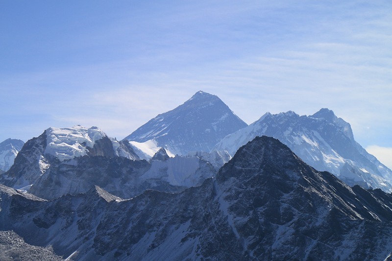 Третий полюс Земли, на который мы, собственно, ездили посмотреть. Эверест, он же Чомолунгма или Сагарматха. Европейское название правильно тем, что это однозначно Он.