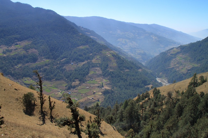 Дорога от Джунбеси до спуска к реке Бени Кхола очень живописна: она идет достаточно высоко по склону, видная нижняя часть долины и противоположная сторона. К тому же путь относительно ровный и можно гулять в свое удовольствие, не особо напрягаясь.