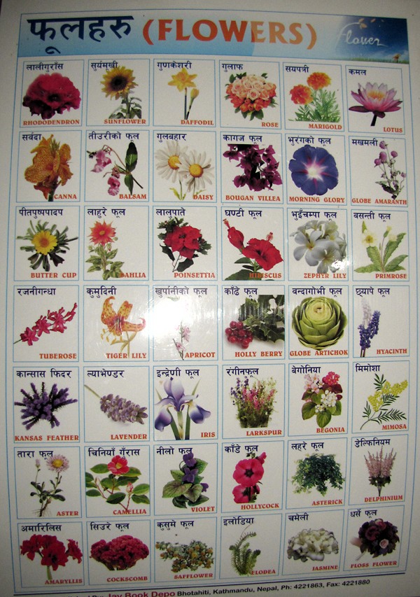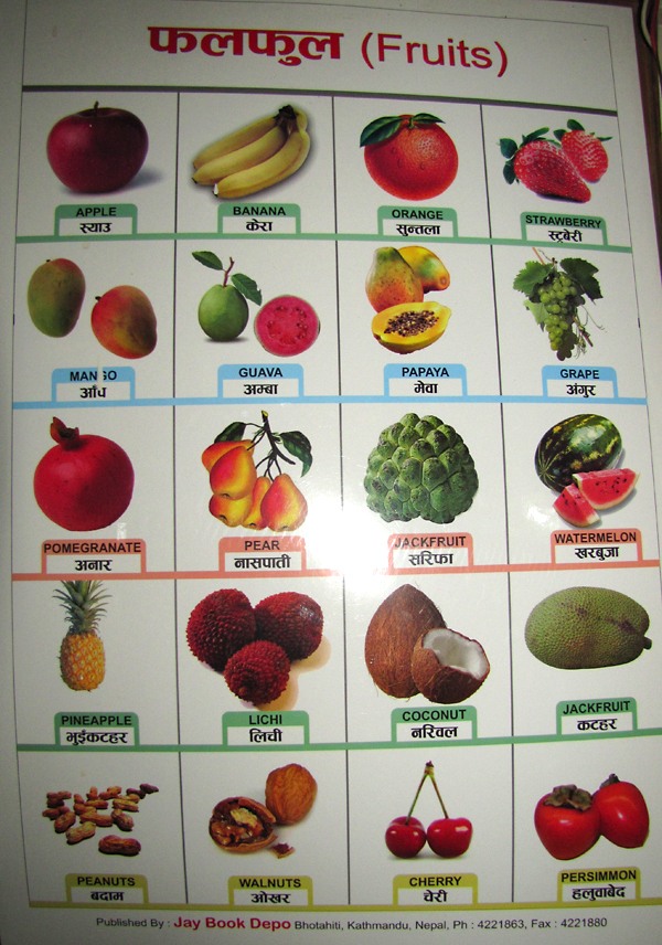 На стенах в столовой в числе прочего висели ценные плакаты с названиями фруктов и растений на непальском и английском языках. Узнала для себя много нового.