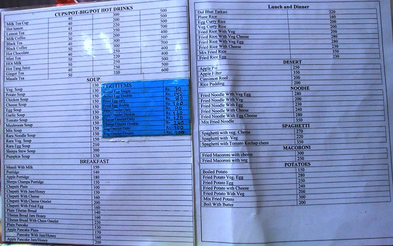 В Рингмо мы остановились пообедать. Кормили невкусно, мы даже забыли сфотографировать меню. Зато было интересно. Здесь появлилсь другие треккеры, причем некоторые шли непонятно откуда, поскольку раньше мы их не видели. Неудивительно: в дне пути отсюда расположен маленький горный аэропорт Пхаплу.