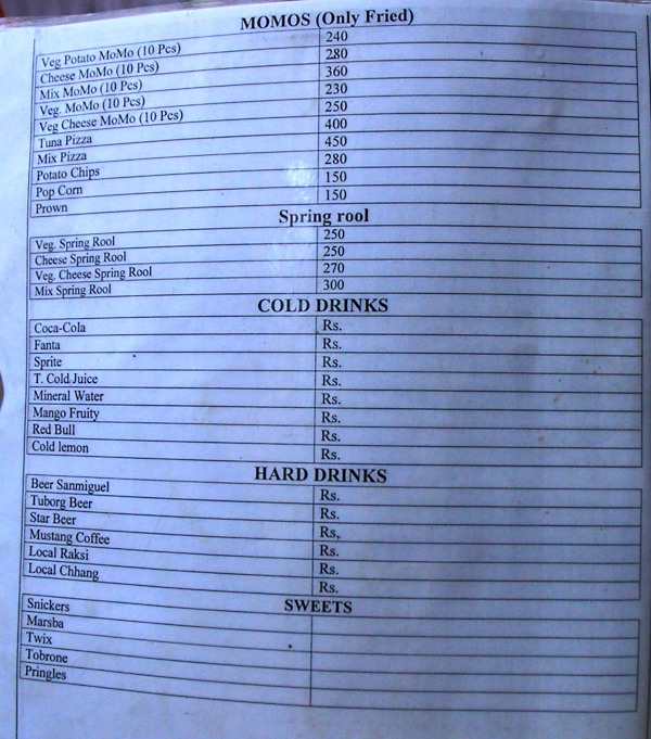 Душ в Shangrila GH хороший, электричество бесперебойное. Цены на еду: