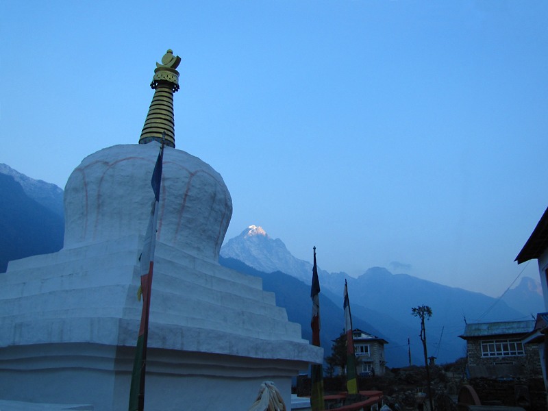 Утром в Чаурикхарке мы наблюдали рассвет и церемонию, которую наша хозяйка проводила у ступы.