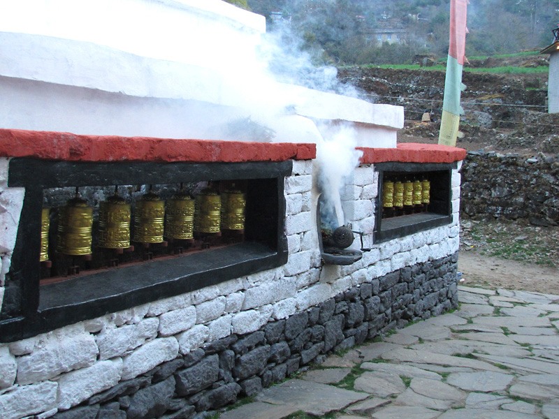 Я тоже обошла ступу, покрутила молитвенные барабаны.