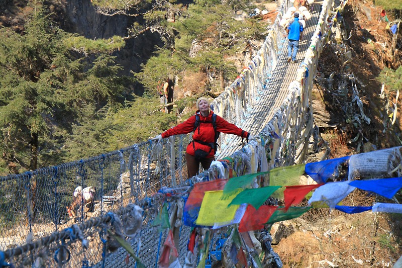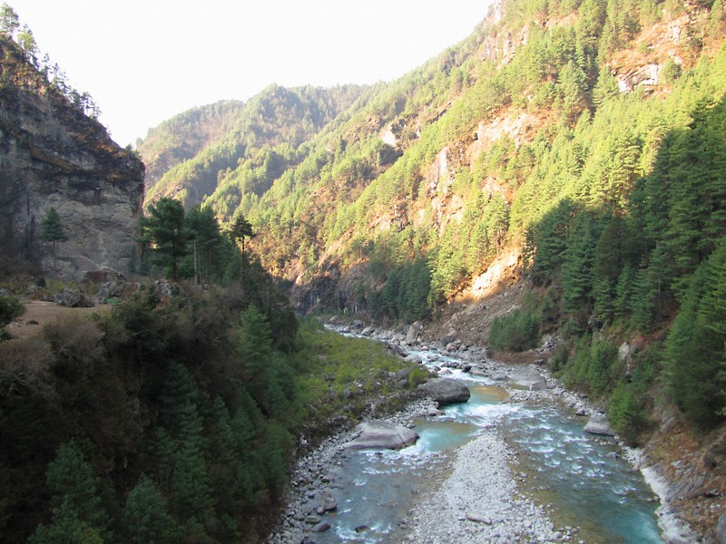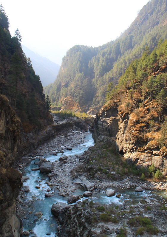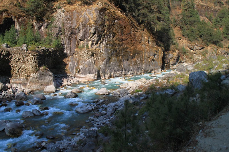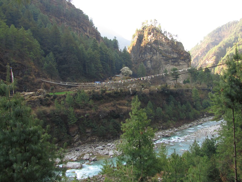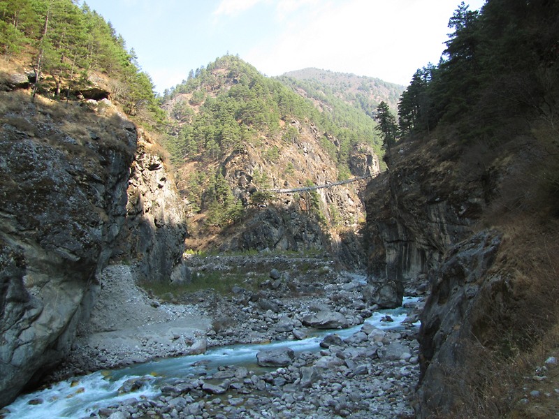 Очень красивая здесь долина Дудх Коси - крутые берега и живописные мостики.