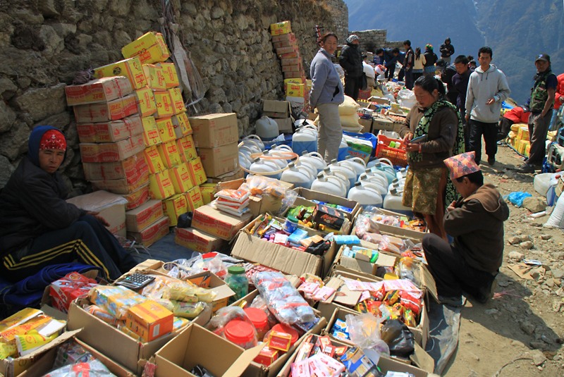 Базар в Намче Базаре - источник разнообразных радостей жизни. После восьми дней треккинга мы накупили яблок и мандаринов, фруктовых компотов в банках, растворимого шоколада, чая и ячьего сыра.