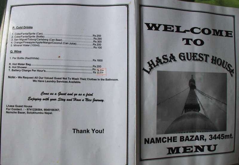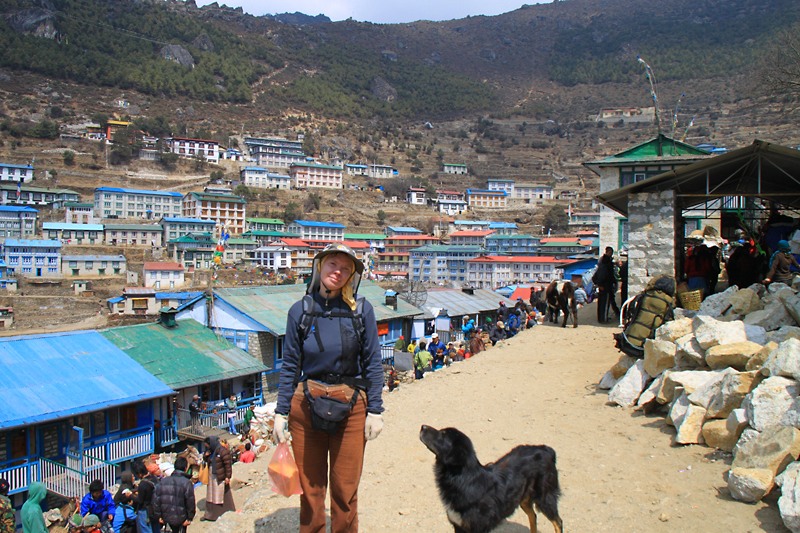 Все недостающие нужные вещи и одежду для треккинга лучше покупать здесь, а вовсе не в Катманду на Тамеле. Разницы в цене я особо не заметила, но Тамель уж больно бестолковое и изматывающее место. А в Намче продаются нужные и полезные вещи, ассортимент магазинов хорошо подобран, быстро находишь все желаемое и даже немного больше. В частности, докупили теплые штаны Рану и шапку для меня (мне предстояло жить и спать в ней в ближайшие две недели). И запасную пару солнечных очков, которая в результате пригодилась. Потому что у Мимбы своих очков, конечно же, не было.