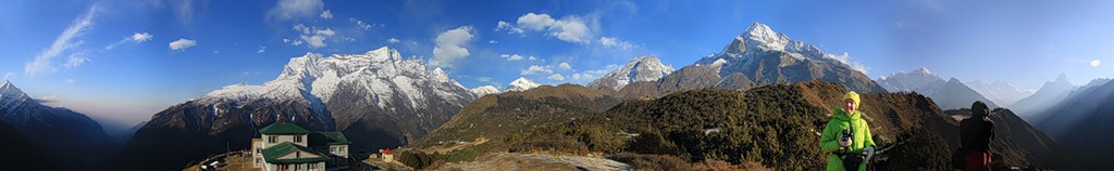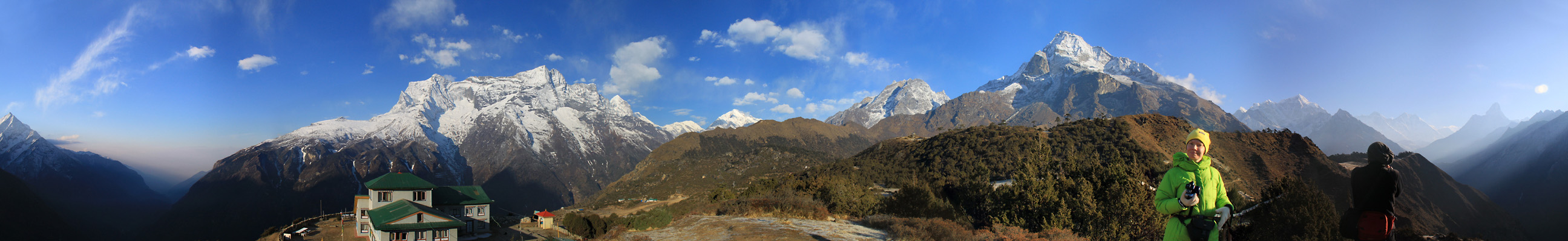 Лучше смотреть ее в большом размере, конечно. Справа налево: Конгде Ри (под ней отель), неизвестные нам три горы вдалеке, Кхумбила, я, еще две горки, верхушка Эвереста за стеной Лхоце и строго под ней одинокий юноша, Ама Даблам. Последнюю почти не видно против солнца, но это только пока. Я напишу об Ама Даблам отдельный пост, потому что если честно, то её я хотела увидеть больше Эвереста.