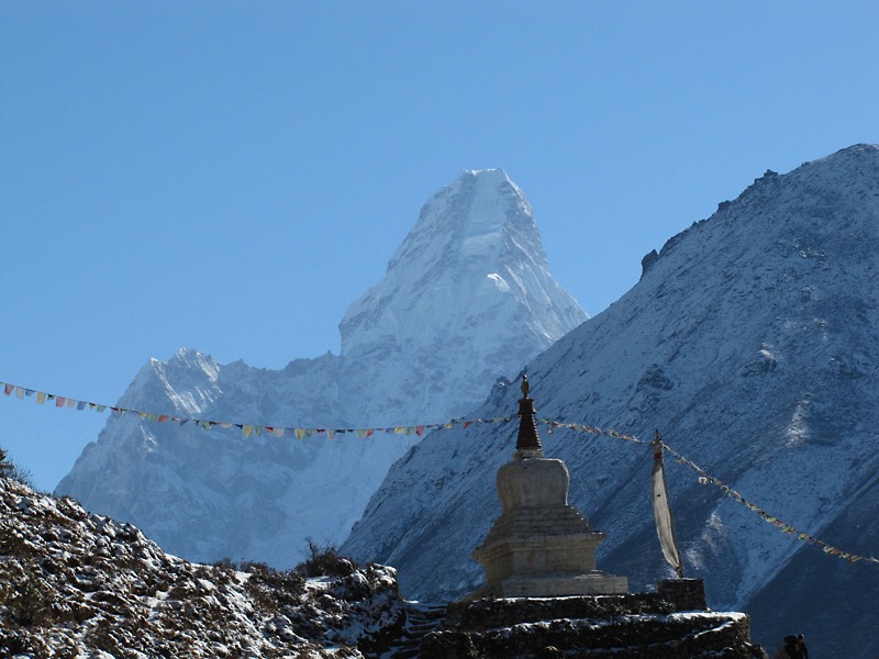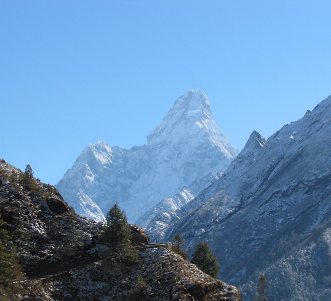 Это был первый день, когда Ама Даблам удалось рассмотреть во всей красе. Солнце уже встало достаточно высоко и не било в глаза, а погода была ясная.