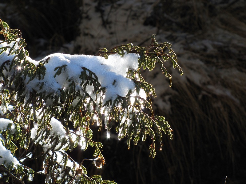 Под солнцем снег стремительно таял, и под елками из-за этого шел настоящий дождь из талой воды.