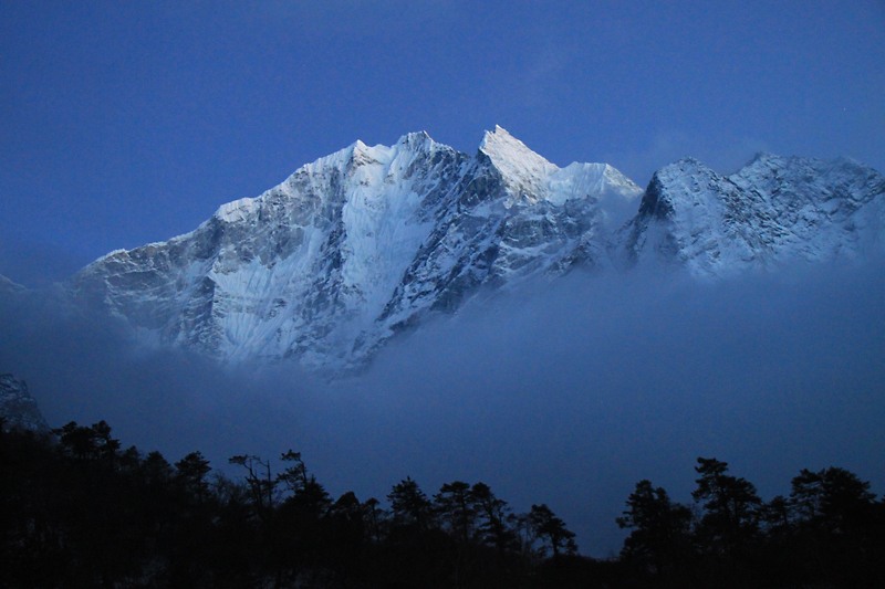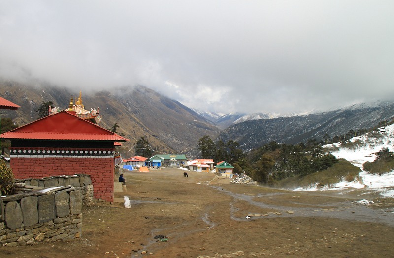 Когда мы добрались до Тьянгбоче, облака почти накрыли нас.
