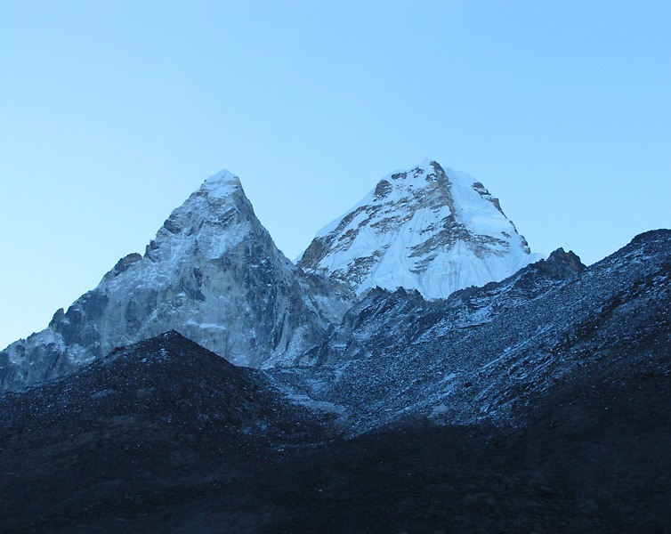 Очертания Ама Даблам искажены. Ведь мы смотрим нее снизу вверх из долины.