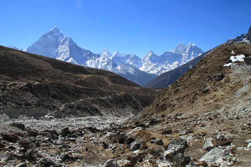 Дневной переход от Дингбоче до Лобуче я почти не помню. Перед глазами была тропинка, в голове крутилась мысль "не упасть". На подъемах скорость падала критически.
