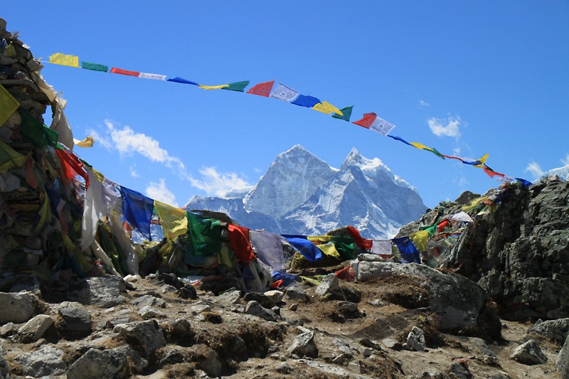 Столовые в лоджах часто украшают флагами экспедиций или разрисованными футболками бывших постояльцев. Мне в Горакшепе запомнилась футболка "No guide. No porter. No drama."