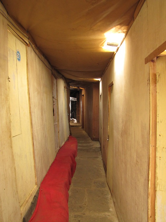 Комнаты отыгрывались фанерными отсеками из одного слоя фанеры. Соседей было не только слышно, но и видно через отверстия от сучков в фанере.