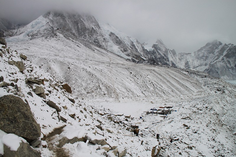 В Лобуче и в Горакшепе народу много. Сколько людей тут скапливается в высокий сезон, страшно представить. Цены, как и в Чукунге, самые высокие на треке.