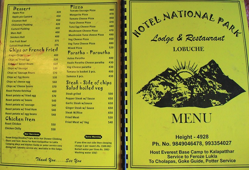 Лодж в Лобуче по имени Kalo Pathar страшен на вид, но цены тут ниже, чем в остальных лоджах поселка на 50-100 рупий за каждое блюдо.