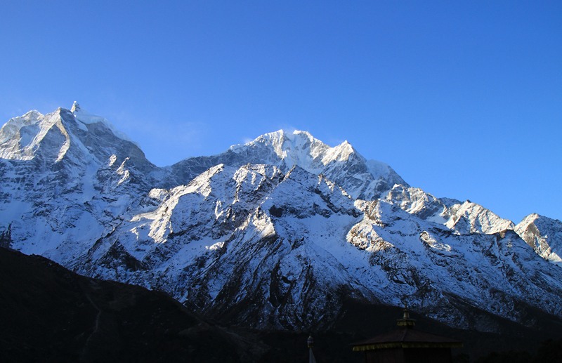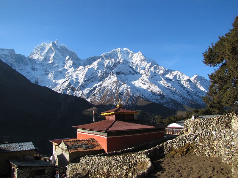 Утро в Верхнем Пангбоче. На переднем плане монастырь.