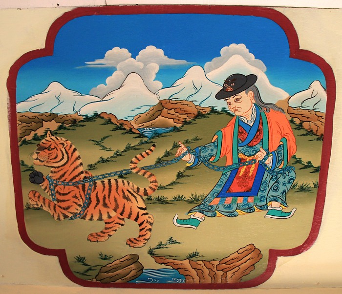 А это кто может быть? Тоже часто изображают, с тигром на цепи. У Рана есть такая же шапка, купленная в Непале три года назад не хватает халата и тигра
