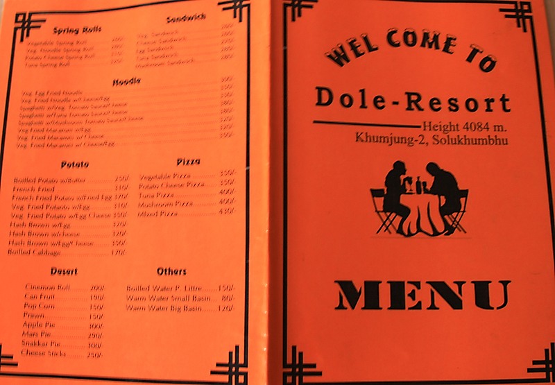 Мы не завернули в поселок Пхорце Тенга, где вроде бы, можно пообедать. Поэтому пришлось терпеть до Доле. Там мы еле разыскали (в третьем или четвертом лодже) хозяйку, которая могла бы нам приготовить еды. Если здесь и останавливаются группы, то их мало и они уже ушли ко времени нашего появления. Многие лоджи выглядят пустыми.