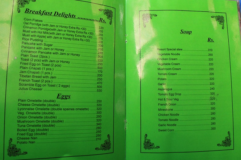 И вообще, посмотрите на названия блюд. Один Yak Stroganoff чего стоит! А что такое десерт Kaiser Schmann- и далее неразборчиво? Мы не рискнули, у нас оставался последний пакетик смекты.