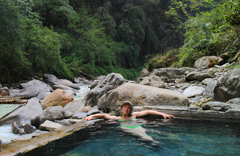 Поход был объявлен матрасным, и вот доказательство. Спа-процедуры в горячих источниках, гималайский пляж Джину и вообще.