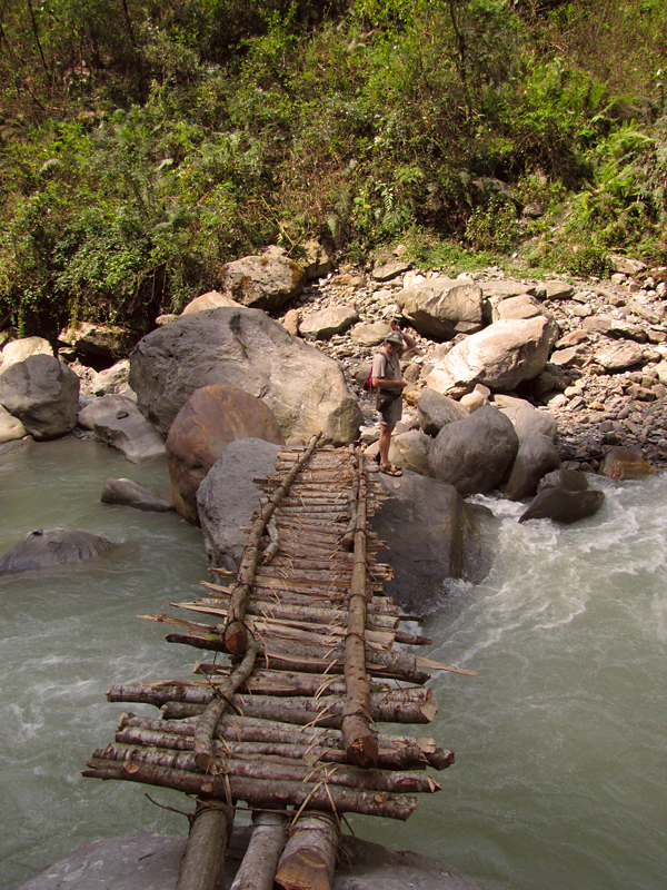 Возле горячих источников есть хлипкий мостик через реку.