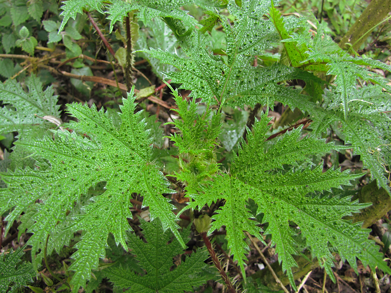 Изящные резные листики, как у конопли, а жжется - как крапива. Я допросила Милана, как же это называется. Он ответил "щищну". Местные жители не отличают ее от обычной крапивы. А обычная крапива, кажется, тут тоже используется для воспитания детей (маленький ребенок будет "щищу" на непали).