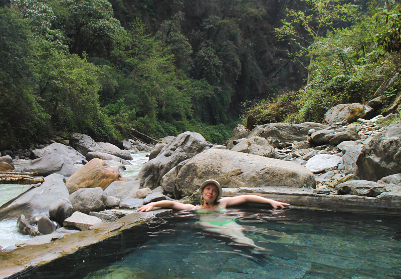 В Джину мы запланировали себе день отдыха. Погода была великолепная, дожди из ущелья Моди Кхолы сюда долетают не каждый день. Помимо горячих источников и теплого климата здесь есть фрукты. К весне, правда, остались только яблоки и апельсины с лимонами.