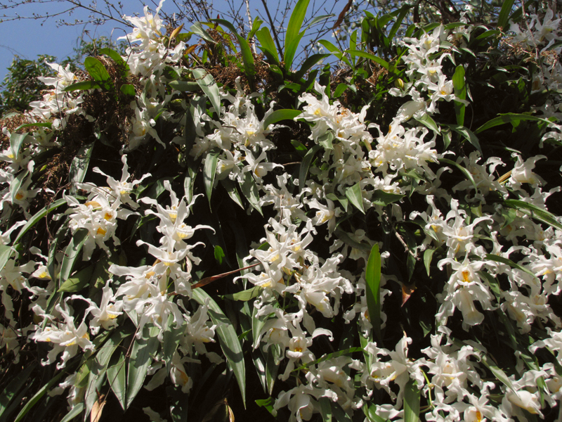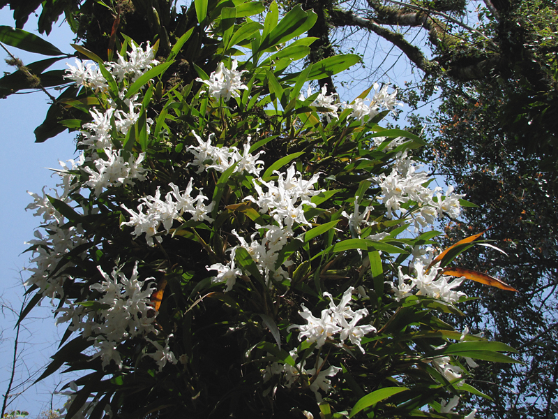 Возле Сиккима я видела мелкие белые и зеленые орхидеи, а тут в сезон попадаются очень даже крупные - белые и реже розовые.