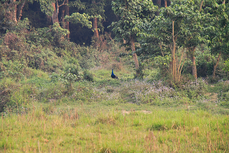 Да, птиц мы тоже не забыли. Вон он, павлин в естественной среде обитания. Орет дюже громко.