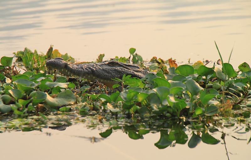 Тихое лесное озеро с крокодилами. Крокодилов не видно, они далеко.