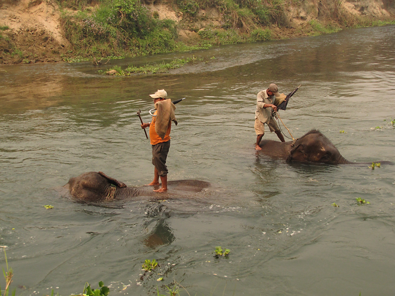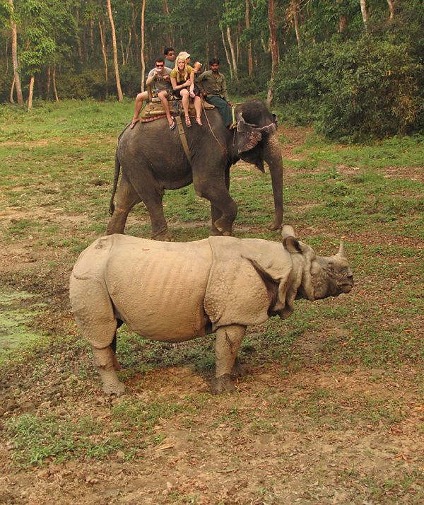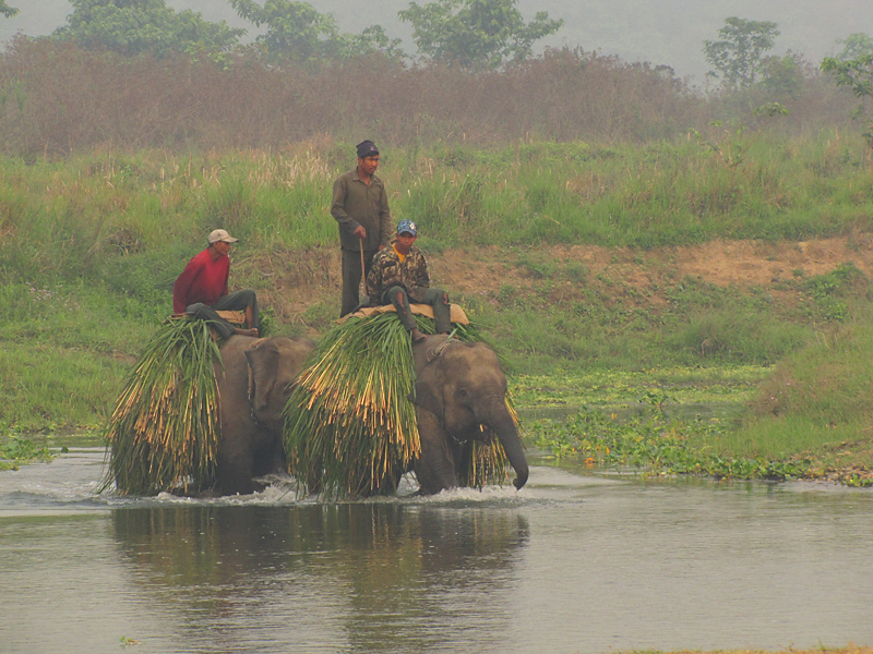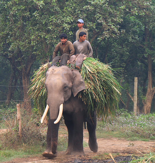Слон в Читване - зверь необходимый. Чтобы подобраться к носорогам поближе, только он и подойдет. Носороги его не пугаются, и, что самое важное, на него не нападают. Поэтому в поселке Саураха, по эту сторону границы, много слонюшень...слонятников...стойбищ для слонов, вобщем.