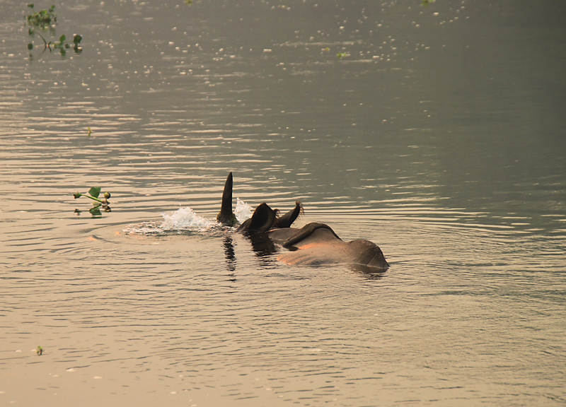 И вот лежит себе носорог поутру в речке.