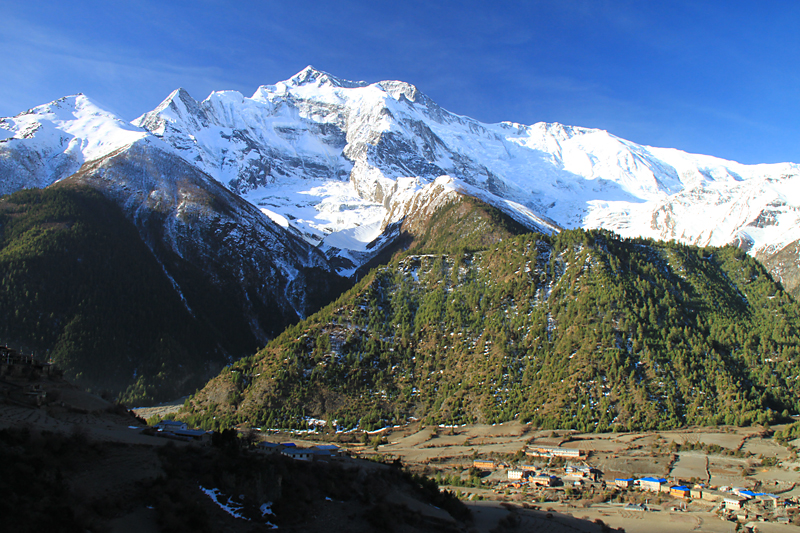 Вторая дорога на Писанг-пик идет из Гьяру. Тут чуть меньше подниматься, хотя по горизонтали до него все равно идти прилично.