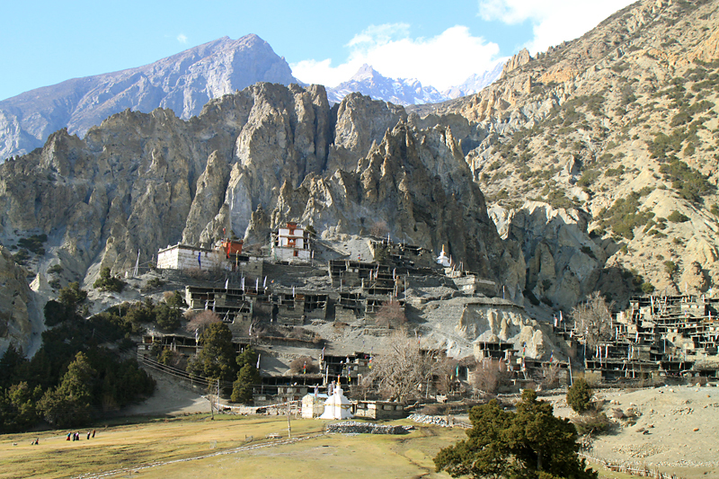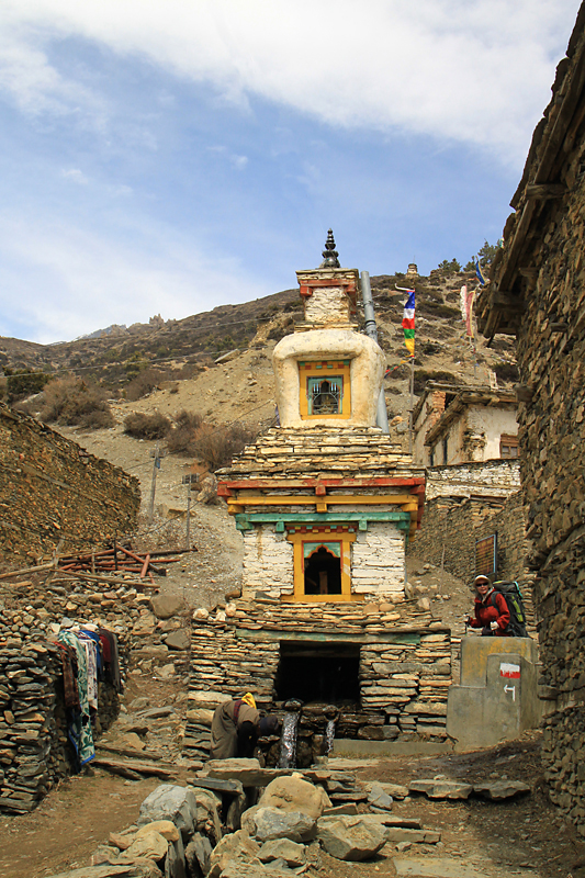От Писанга до Мананга можно полюбоваться аутентичными тибетскими деревнями, с каменными квадратными домами, средневековыми улочками и вот такими ступами. Никаких гладких линий, никакого фабричного бетона.