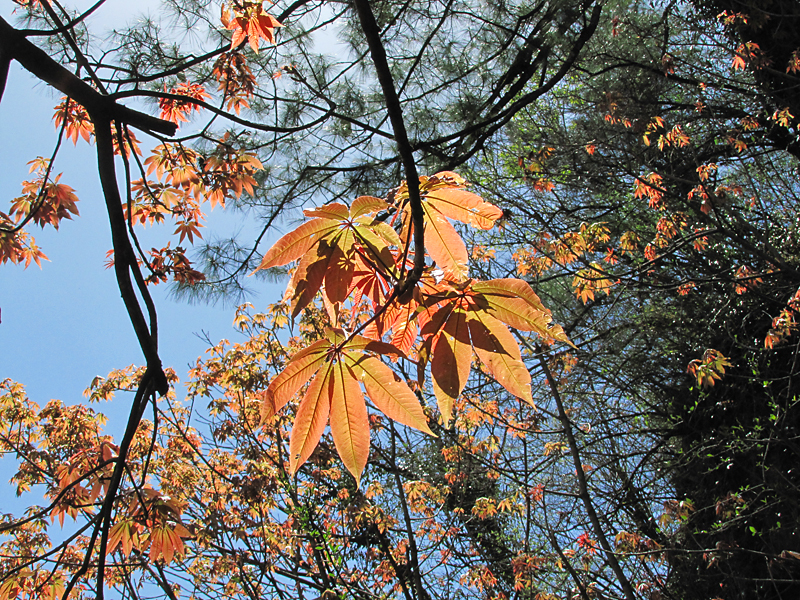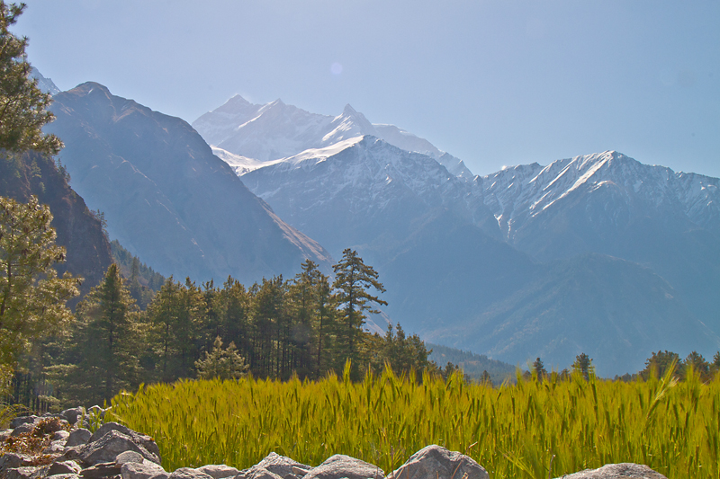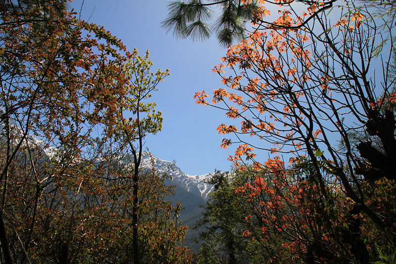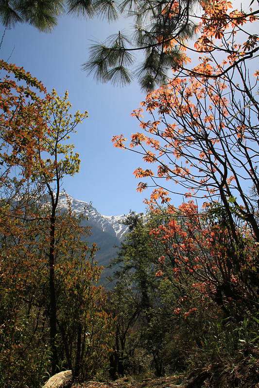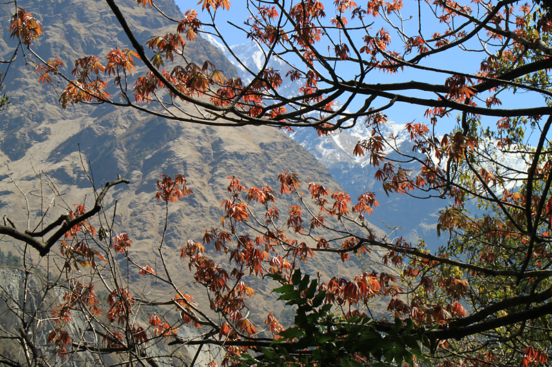 На верхней тропинке, которая идет с одним перерывом почти до Гхасы, как раз распускались деревья и оттенки зелени создавали совершенно завораживающие картины.