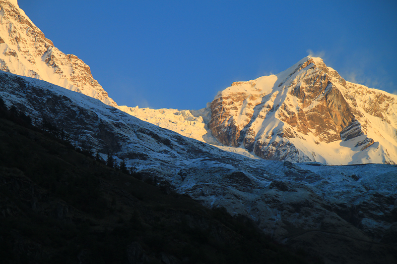 А издалека можно даже лучше разглядеть ледопад Дхаулагири.