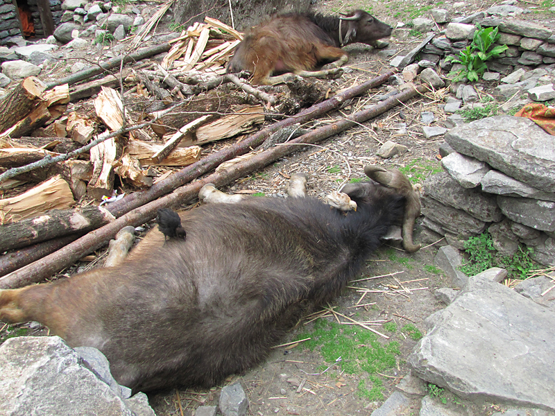 На следующий день у нас был эпический подъем в Горепани. Напомню, что разница высот Татопани - Горепани составляет 1700 метров, то есть очень много, идти приходится постоянно в гору. Мы сперва думали остановиться в Щикхе и не геройствовать. Кстати, до Щикхи дотянули грунтовую дорогу, правда, по ней никто особо не ездит.