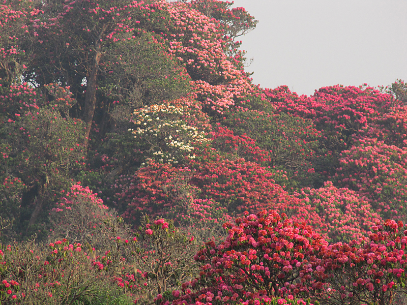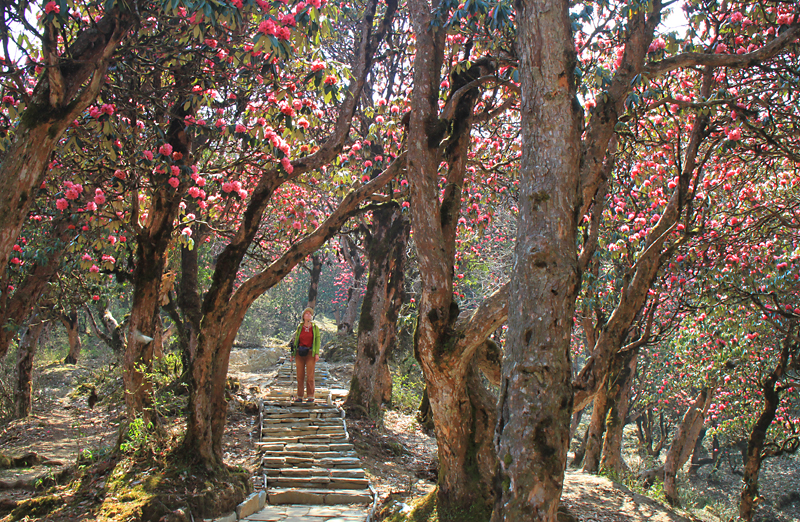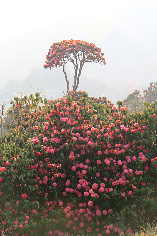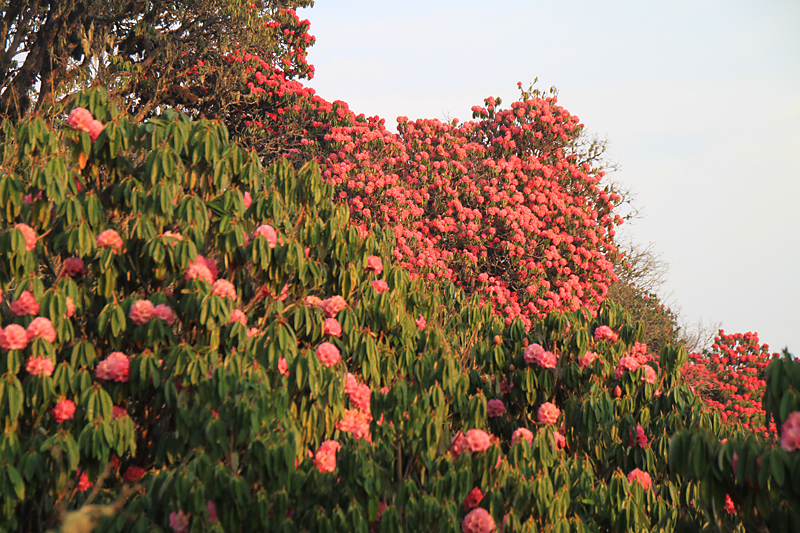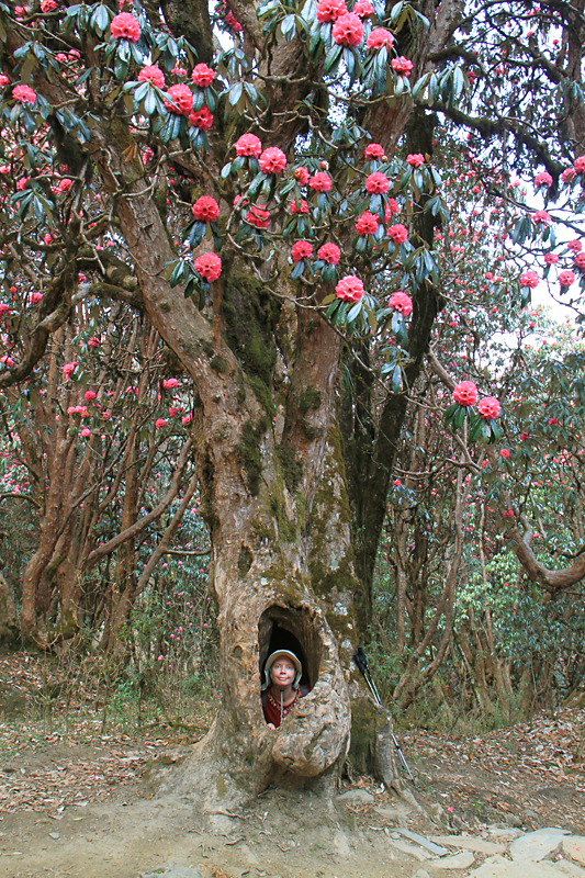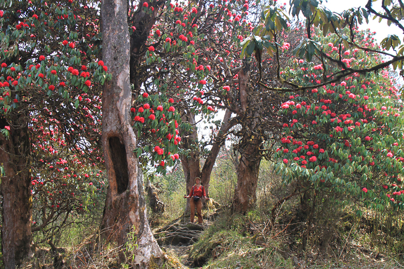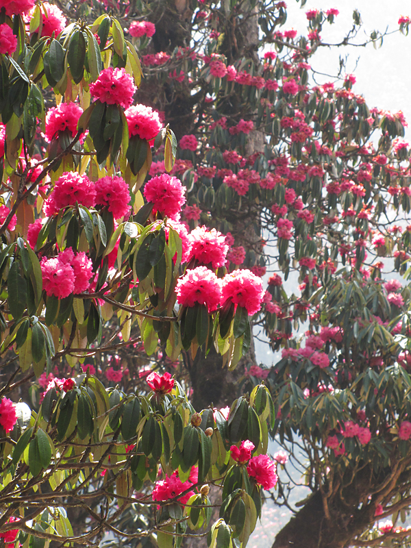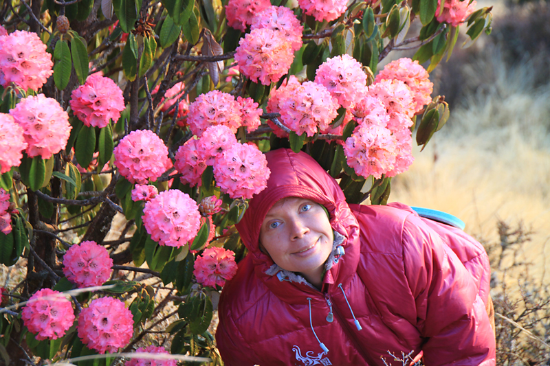 Возле одного из лоджей в поселке увидели сиреневый рододендрон, в лесах почти не встречающийся. Кажется, лишь однажды в ущелье Моди Кхолы я видела подобный оттенок.