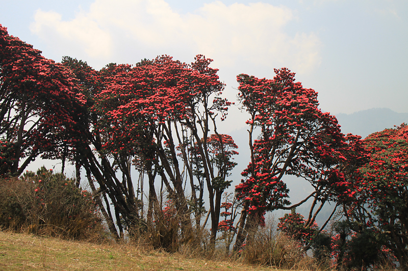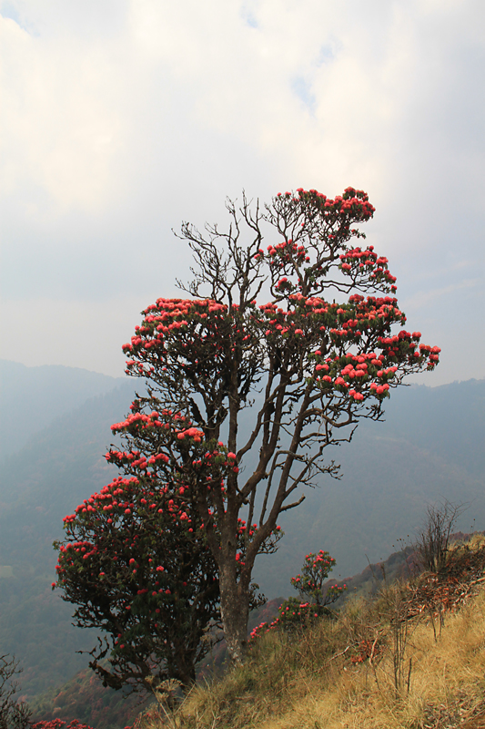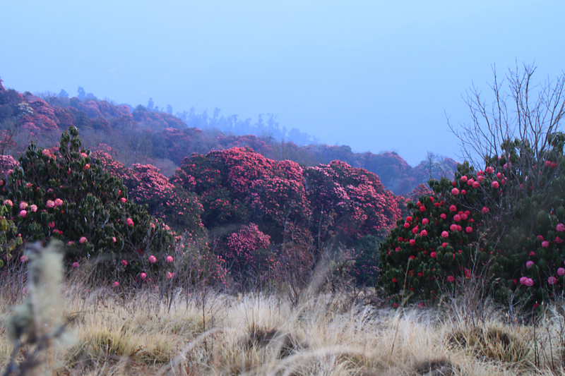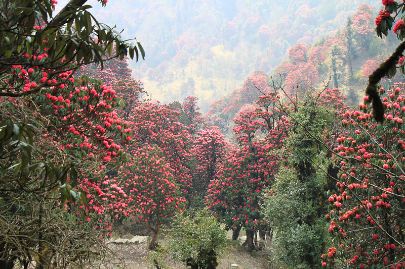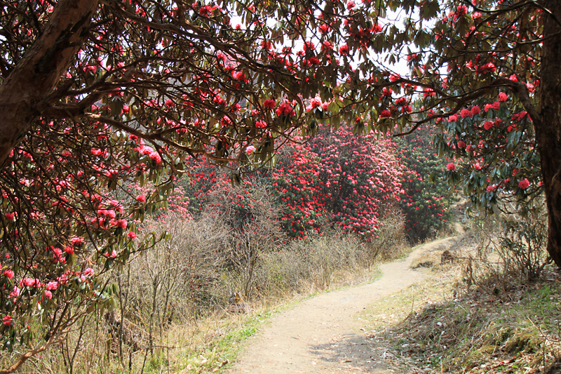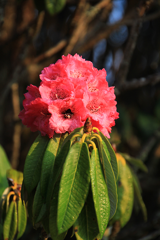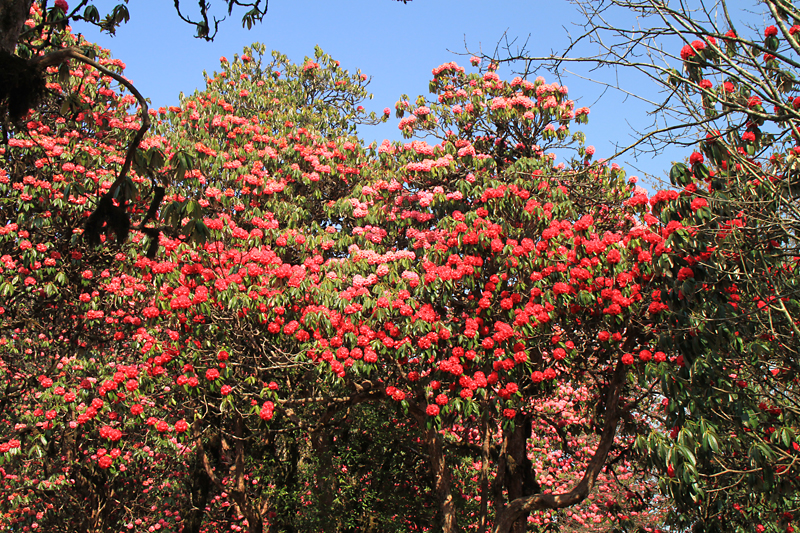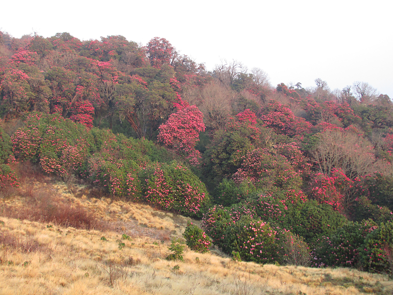 Возле одного из лоджей в поселке увидели сиреневый рододендрон, в лесах почти не встречающийся. Кажется, лишь однажды в ущелье Моди Кхолы я видела подобный оттенок.