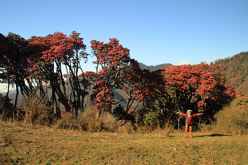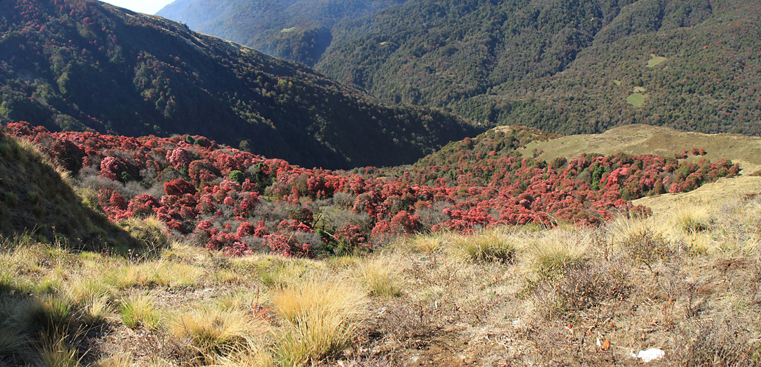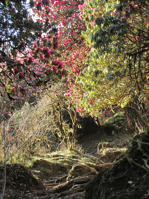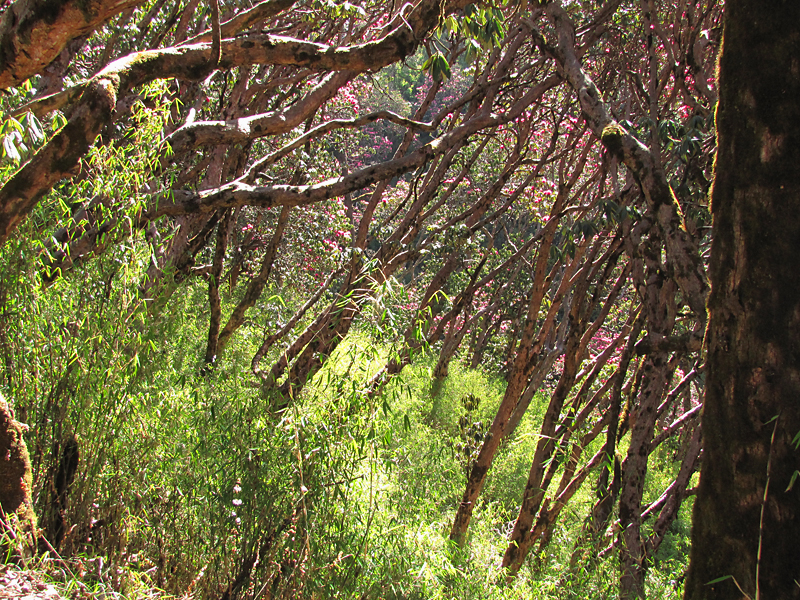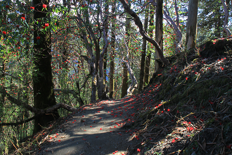 В Бантханти пришли рано, съели по печеньке и пошли в Тадапани. Там рододендроны уже по большей части отцвели, поэтому фотографий с этой части маршрута нет. А в прошлом году, пораньше, там было очень красиво.