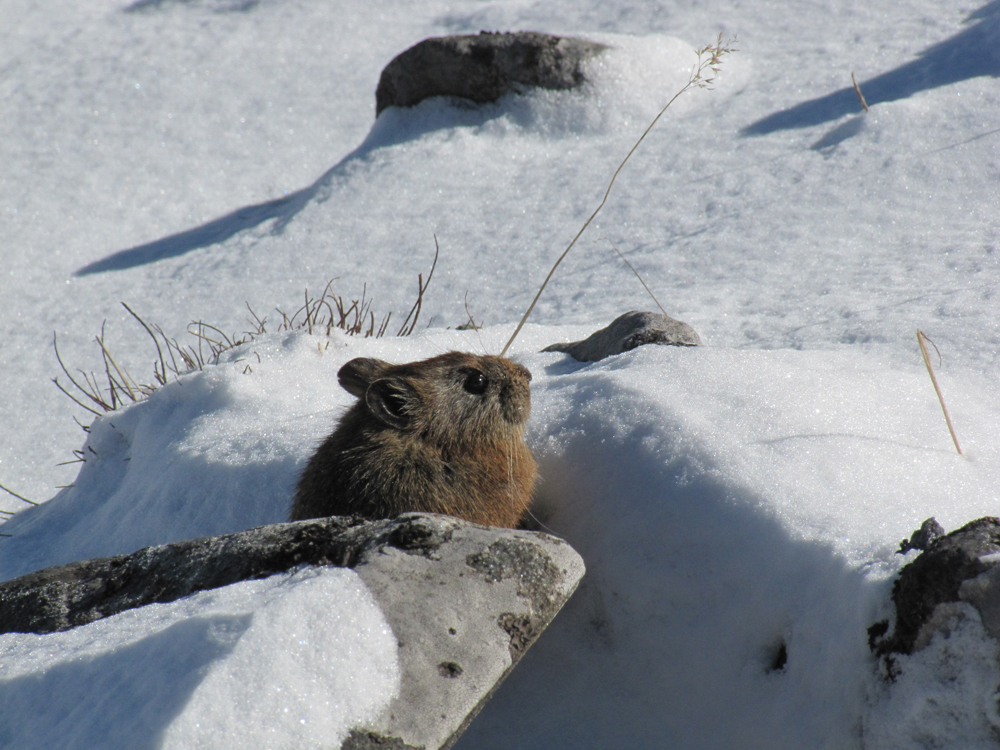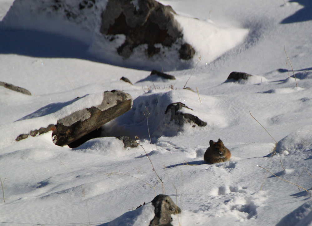Местные зовут ее «пика». Это уже больше 4000 метров, между прочим. Мышь живет в камнях под снегом, людей не сильно боится.