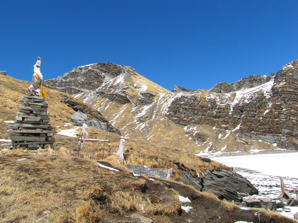 Озеро Кхаяр в апреле еще замерзшее. Высота 4600.