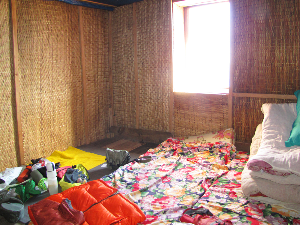 Мы еще не были на треке Марди химал и не останавливались в домах с земляным полом, каменными стенами и деревянными ставнями вместо окон. А тут хоть циновки на стенах есть, и стекла, и даже лампочка! Цивилизация :-)