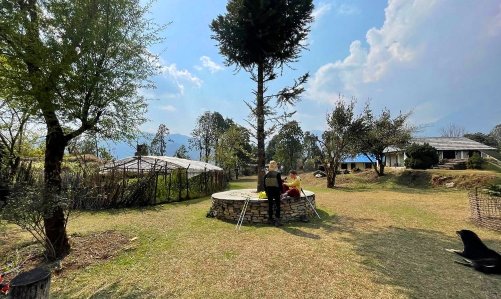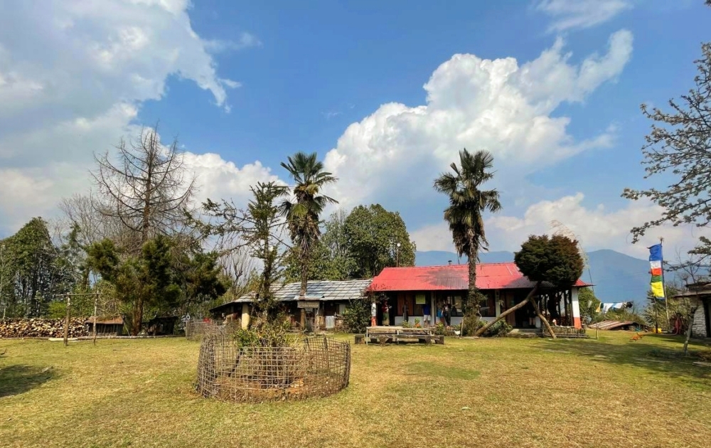 Тогда мы опрометчиво решили дойти за день из Горепани в Джину, а это долгий путь и больше двух километров сброса высоты, пришлось долго отмокать в горячих источниках. Тогда по пути зашли в лодж, попили чаю и чуть было не остались там, потому что место благостное. Однако, хотелось купаться, потому и не остались.