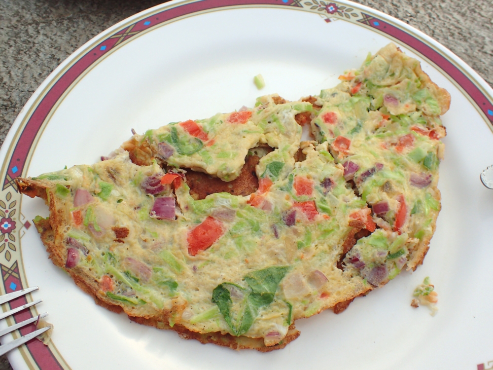 Это был завтрак на следующее утро, разноцветный омлет с лепешкой: