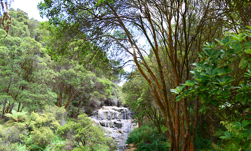Между двумя кипящими и дымящимися зонами есть зеленый перешеек с лесом, в котором прячется горячий водопад. Тот самый, Какахи.